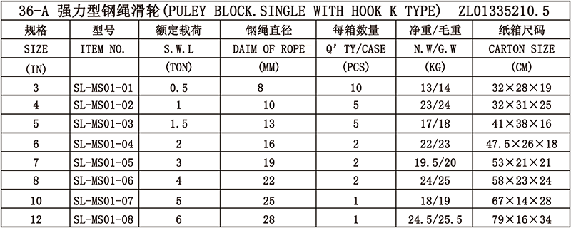 1、可适用于钢丝绳或绳索的拉吊。 2、此滑车开口设计,可侧面放入钢丝绳,省时省力。 3、采用铸钢轮,经久耐用。 4、轴套采用纯铜套,并有注油孔,保养方便。